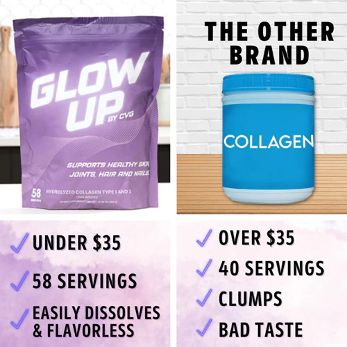 CVG has made Glow Up to be a simple, well-made product that will support your natural collagen growth.Â