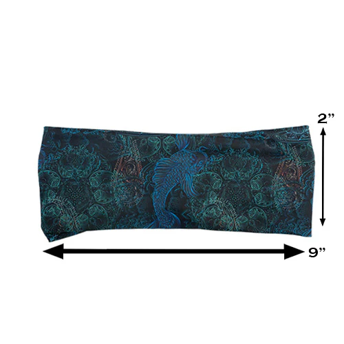 This unisex headband is 9" x 2" and is the perfect blend of nylon and spandex.  (You're going to love it!)